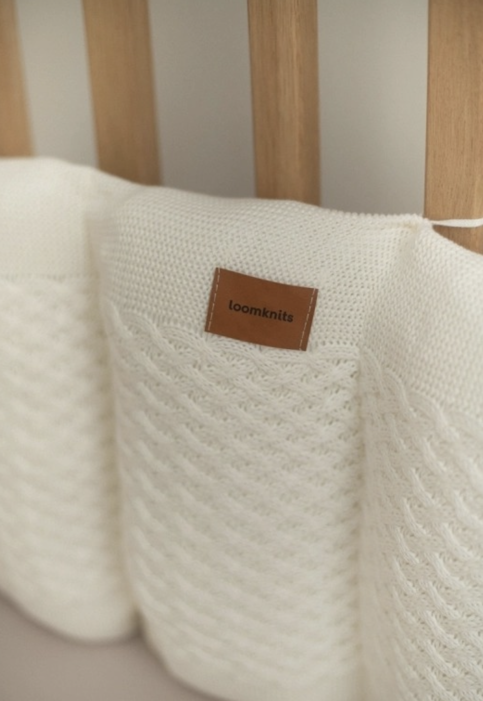 The Loomknits side pillows are not only elegant and beautifully designed but also provide soft support and protection for your baby while sleeping. Perfect for use in cribs, bassinets, or playpens, they help create a safe and snuggly space.
