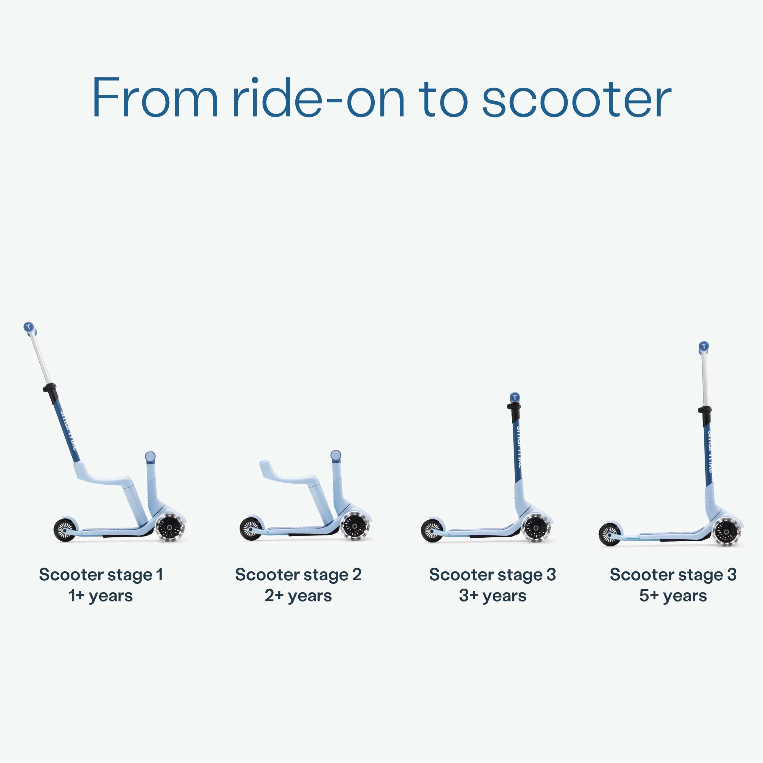 Multi-stage design transitioning from ride-on to a full scooter